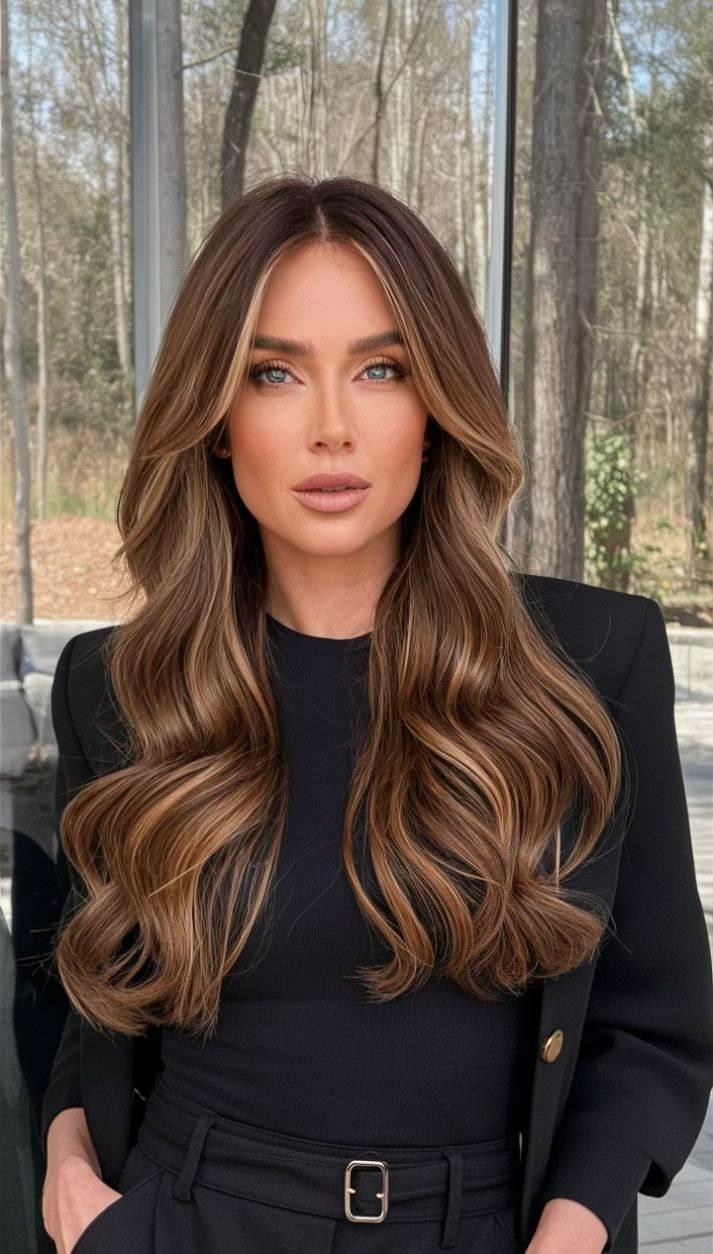 – Caramel & Golden Honey Işıltısı: Karamel balyajlar ve yüz çevresini çerçeveleyen “Golden Honey” tonları, saça ışık katıp doğal bir parlaklık veriyor. Bu yumuşak tonlar, hem sıcak hem de sofistike bir sonbahar stiline dönüşüyor.