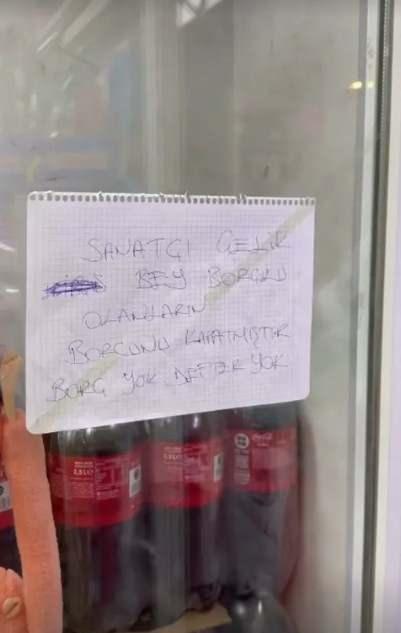Sanatçının dükkandan ayrılmasının ardından market camına asılan el yazısı not, sosyal medyada günün en çok konuşulan görsellerinden biri oldu. Notta yer alan şu ifadeler dikkat çekti:
