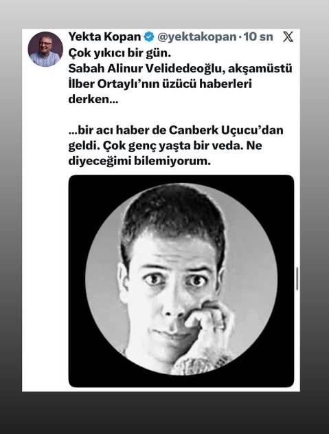 “Çok yıkıcı bir gün. Sabah Alinur Velidedeoğlu, akşamüstü İlber Ortaylı’nın üzücü haberleri derken, bir acı haber de Canberk Uçucu’dan geldi. Çok genç yaşta bir veda. Ne diyeceğimi bilemiyorum.”
