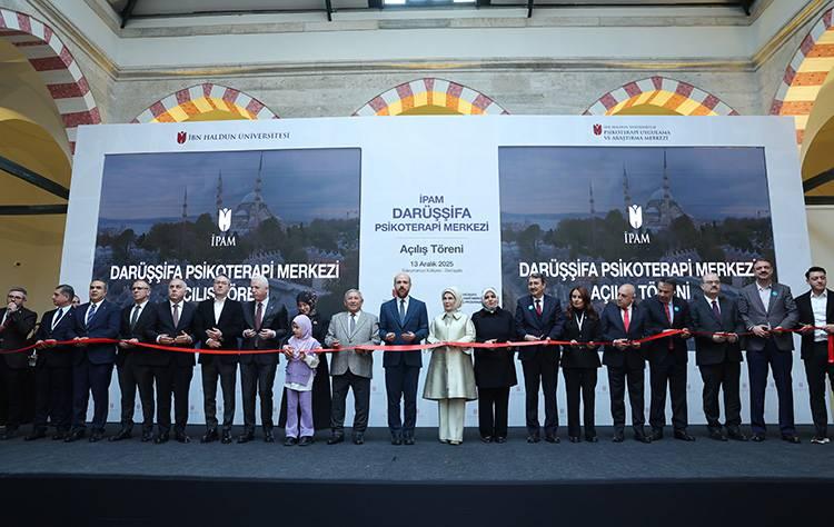 Emine Erdoğan, Süleymaniye’deki İHÜ İPAM Darüşşifa Psikoterapi Merkezi’nin açılışında yaptığı konuşmada, Kanuni Sultan Süleyman’ın vizyonundan, Mimar Sinan’ın ellerinden çıkan merkezde katılımcılarla bir araya gelmekten mutluluk duyduğunu söyledi.