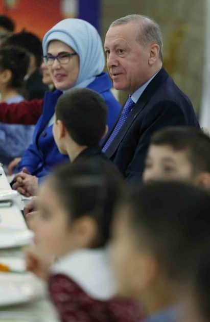 Yaşları 7 ila 12 arasında değişen 23 çocukla bir araya gelen Erdoğan çiftine programda Aile ve Sosyal Hizmetler Bakanı Mahinur Özdemir Göktaş eşlik etti.