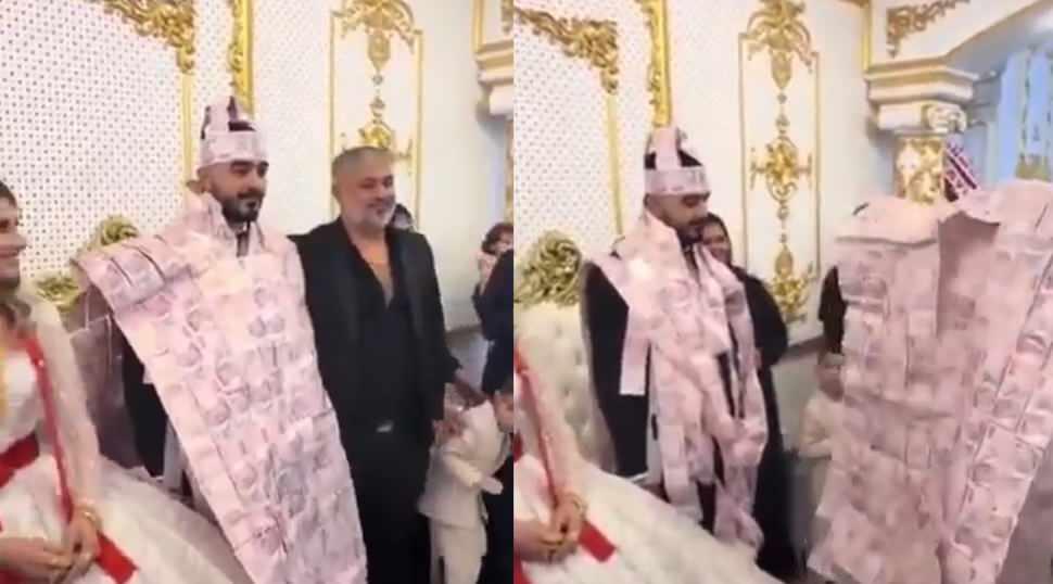 Damat, adeta 200 liralık banknotların arasında kaybolurken renkli görüntüler kısa sürede sosyal medyada viral oldu.
