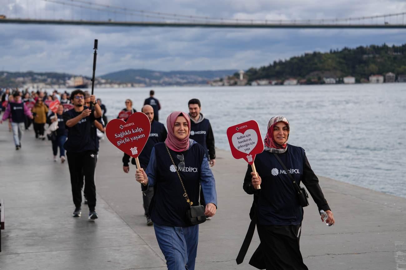 Öte yandan Medipol Sağlık Grubu, Dünya Kalp Günü kapsamında kalp ve damar sağlığının önemine dikkat çekmek için Rumeli Hisarı’nda “Kalbin İçin Adım At” temalı anlamlı bir yürüyüş gerçekleştirdi. Sabahın erken saatlerinde sağlık çalışanları ve doktorların katılımıyla başlayan etkinlik, sakatlanmaları önlemek için yapılan ısınma hareketleriyle start aldı. Ardından katılımcılar tempolu yürüyüşe geçerek belirlenen parkuru birlikte tamamladı. Etkinlik boyunca hem kalp sağlığını korumada düzenli fiziksel aktivitenin önemi vurgulandı hem de sağlıklı yaşam alışkanlıklarının günlük hayatın ayrılmaz bir parçası haline getirilmesi gerektiği hatırlatıldı.