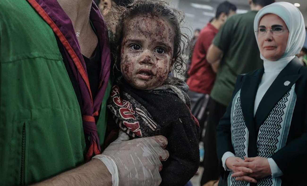 Emine Erdoğan, Gazze’de son iki yılda 20 bini çocuk olmak üzere 67 binden fazla masum insanın hayatını kaybettiğine dikkat çekerek, “Ahlaki pusulasını kaybetmiş bir devlet, dünyanın gözü önünde Filistin halkını yok etmeye çalışıyor” sözleriyle İsrail’in insanlık dışı saldırılarını sert şekilde kınadı.