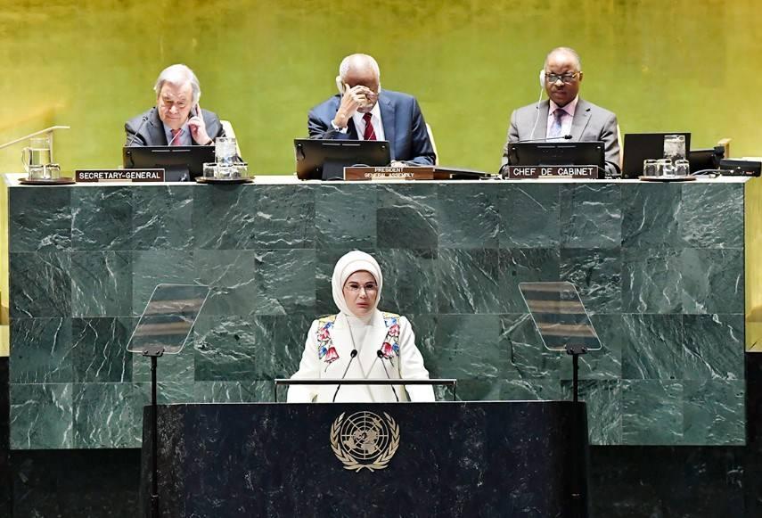 Emine Erdoğan, BM 77. Genel Kurulu marjında düzenlenen “Sıfır Atık” konulu özel oturumda konuşma yaparak kurula hitap eden ilk Türk lider eşi oldu.