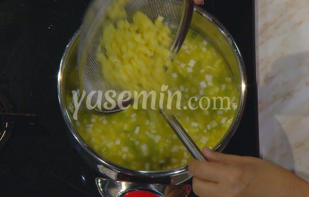 Kaynamaya başlayınca limonlu suda bekletilmiş küp doğranmış kereviz eklenir.