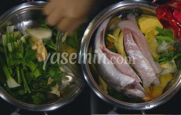 Balıkla haşlanan süzülmüş sebze suyu eklenir.