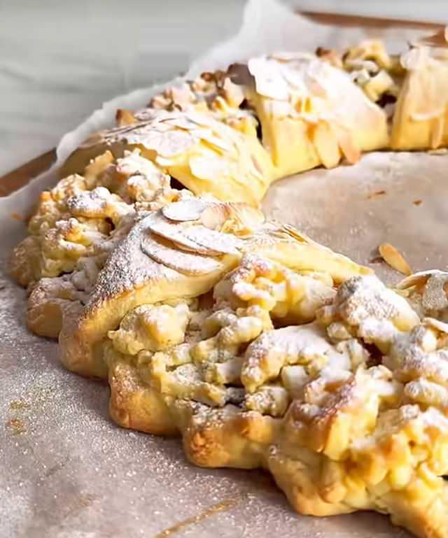 Dinlenmiş hamuru pişirme kağıdı arasında açarak yuvarlak bir form verin.