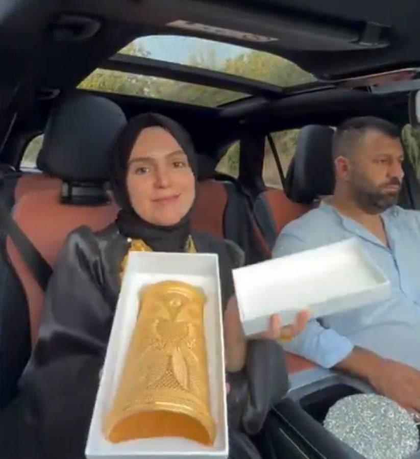 Bursa’da yaşayan ve araç kiralama ile emlak danışmanlığı yaptığı öğrenilen influencer N.B. ve eşi M.B., geçtiğimiz günlerde sosyal medya hesaplarında bir video paylaştı. Videoda N.B., eşi M. B.’in kendisine aldığını söylediği kiloluk altınları ‘Nişana hazırlanıyoruz’ başlığıyla duyurdu.