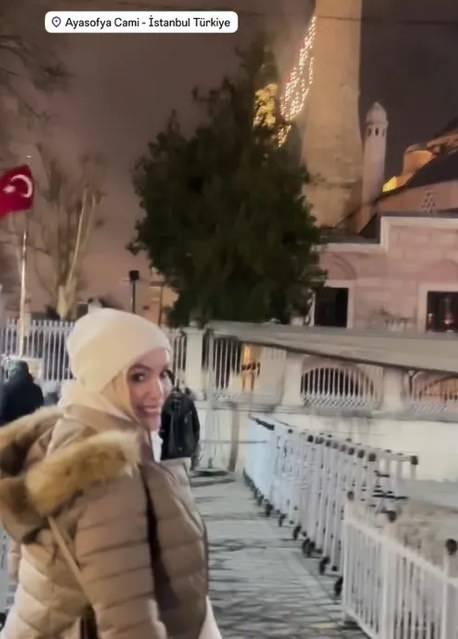 Ayasofya’nın ardından Eyüp Sultan Camii ve Türbesi’ni ziyaret etmeyi ihmal etmeyen Özçelik, gecenin karanlığında ışıl ışıl parlayan camiyi “Çok seviyorum, hoş bulduk” mesajıyla takipçileriyle paylaştı.