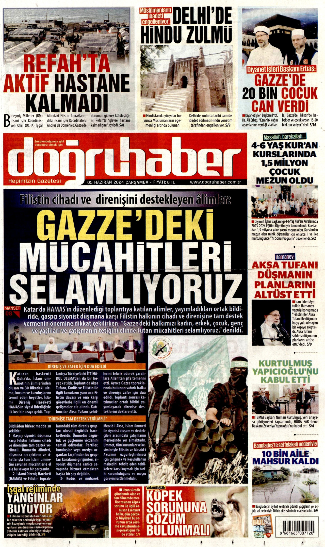 DOĞRU HABER Gazetesi 05 Haziran 2024, Çarşamba Günü Manşeti
