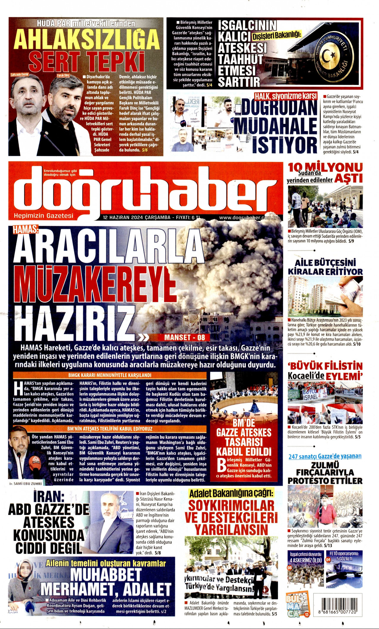 DOĞRU HABER Gazetesi 12 Haziran 2024, Çarşamba Günü Manşeti