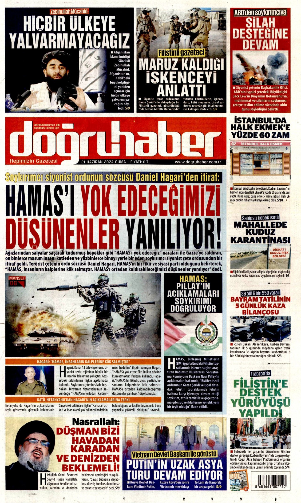 DOĞRU HABER Gazetesi 21 Haziran 2024, Cuma Günü Manşeti