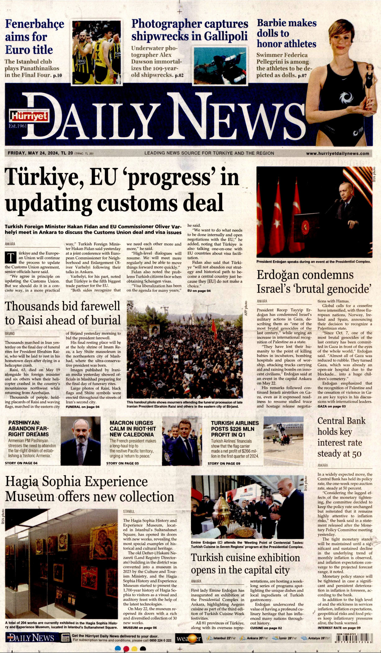 HÜRRİYET DAİLY NEWS Gazetesi 24 Mayıs 2024, Cuma Günü Manşeti