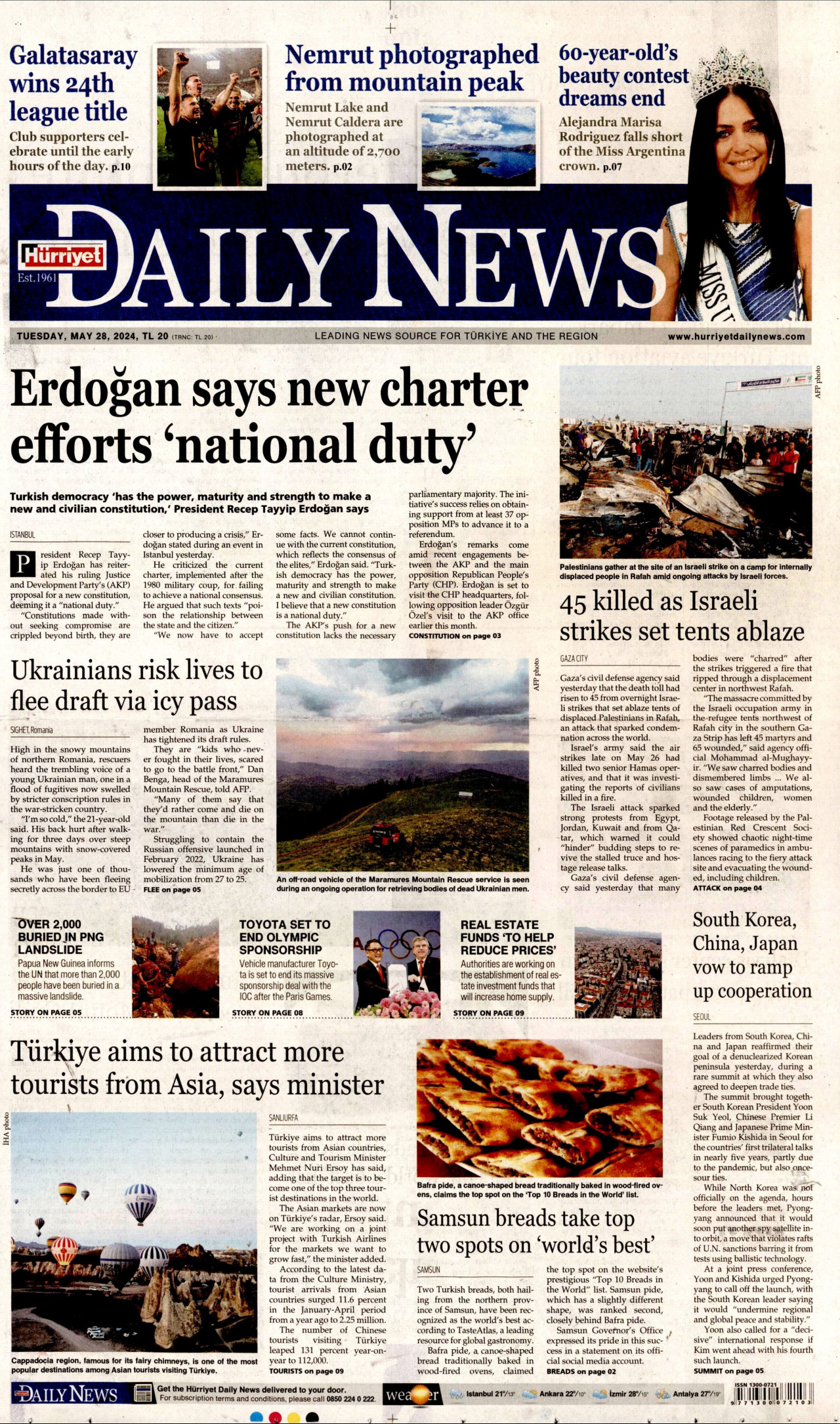 HÜRRİYET DAİLY NEWS Gazetesi 28 Mayıs 2024, Salı Günü Manşeti