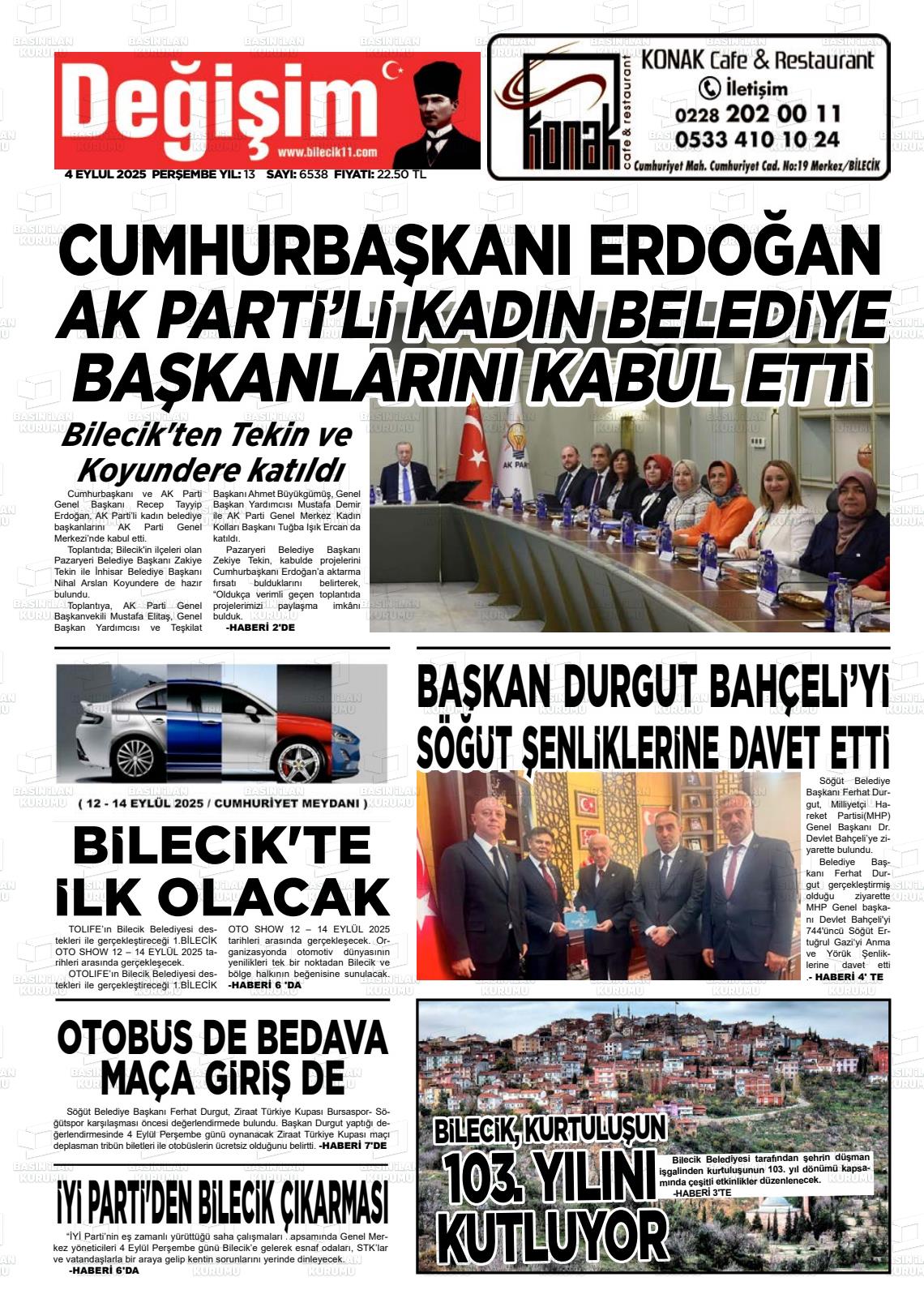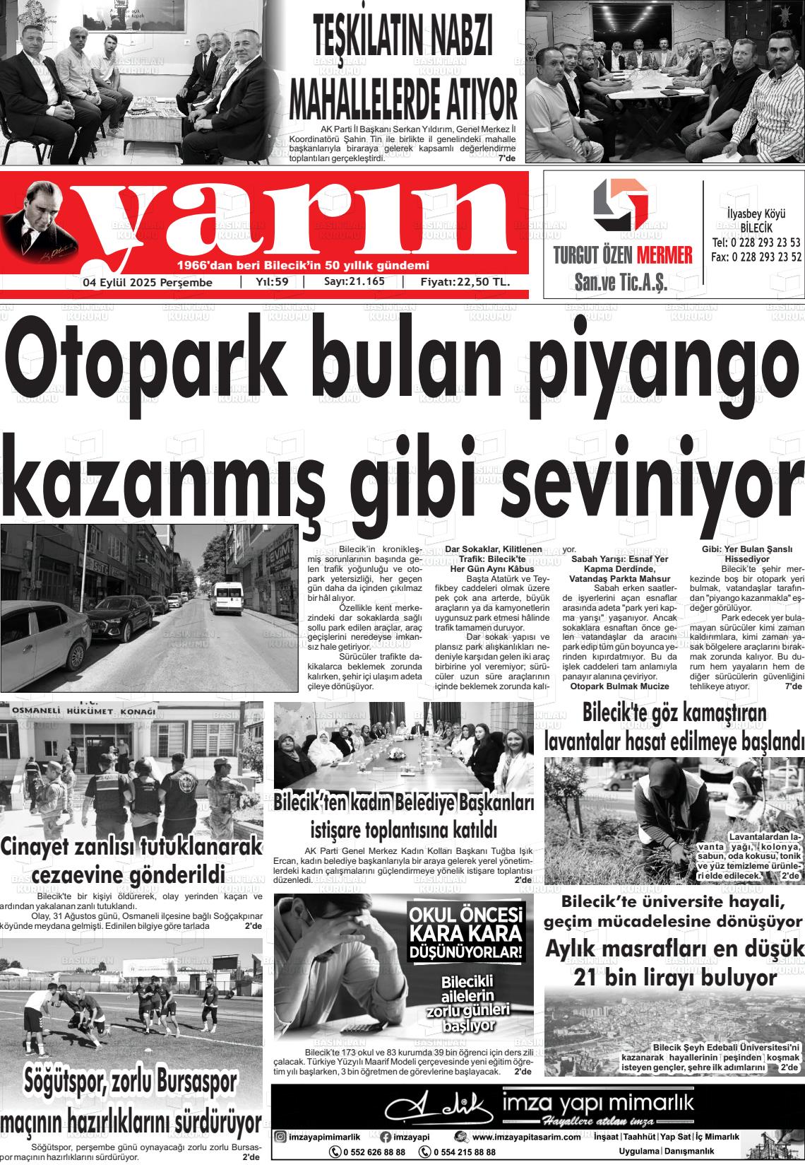 Bİlecİk Yerel Gazeteleri 15 Aralık 2025, Pazartesi Günü Manşeti