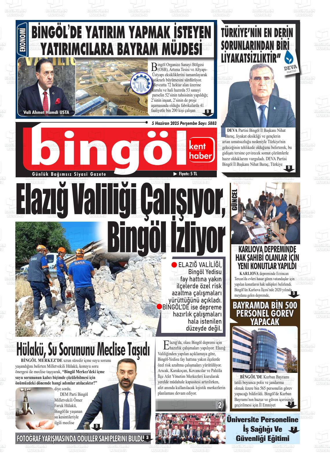 Bİngöl Yerel Gazeteleri 26 Ekim 2025, Pazar Günü Manşeti