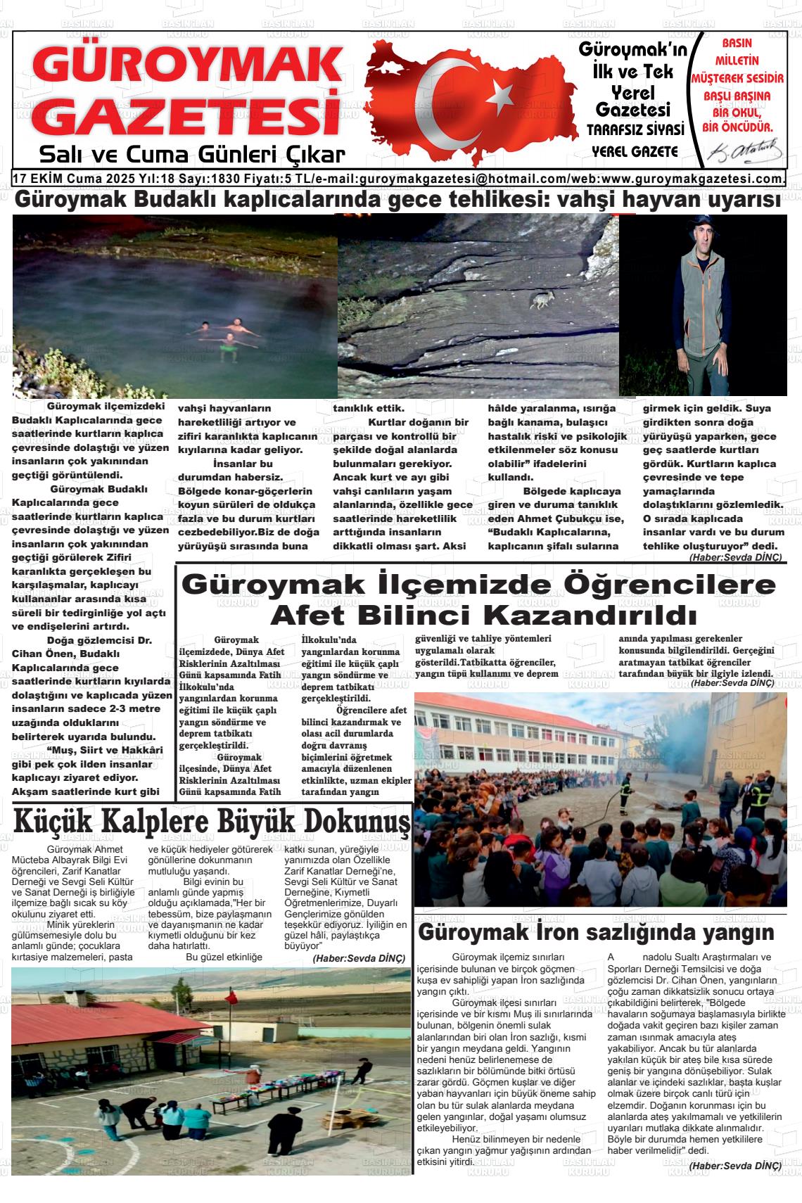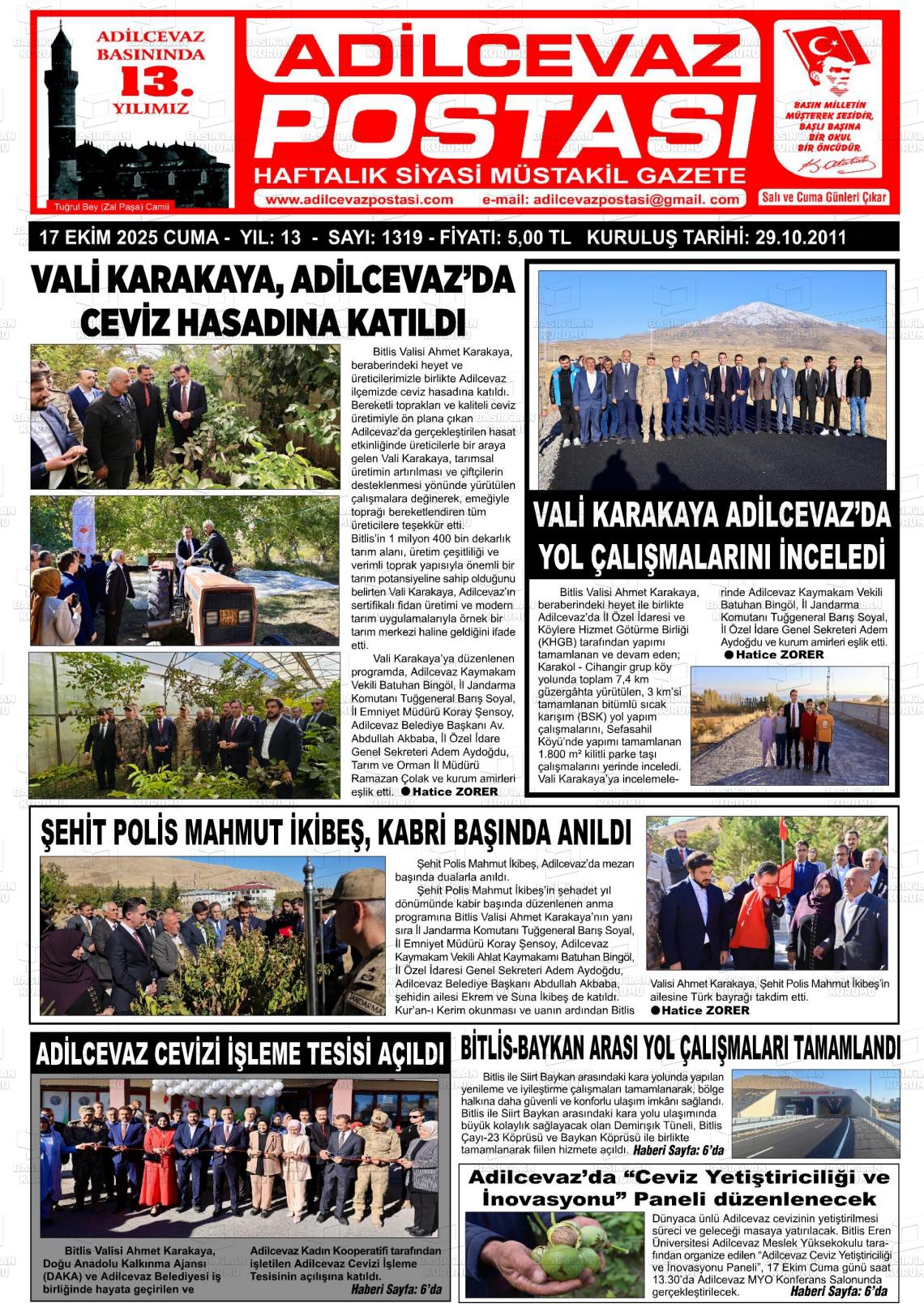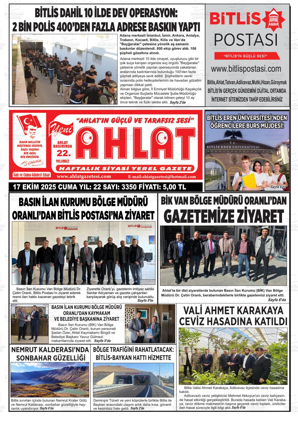 Bİtlİs Yerel Gazeteleri 16 Ekim 2025, Perşembe Günü Manşeti