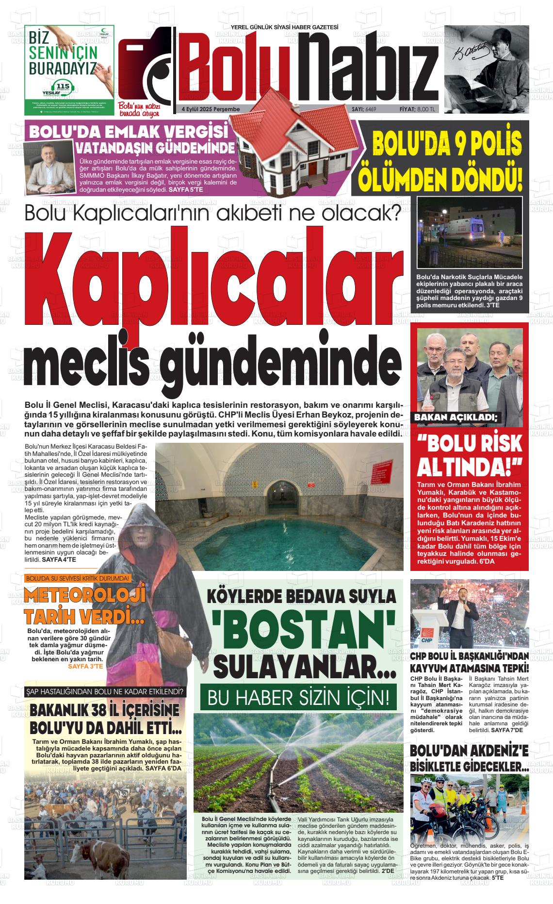 Bolu Yerel Gazeteleri 15 Aralık 2025, Pazartesi Günü Manşeti