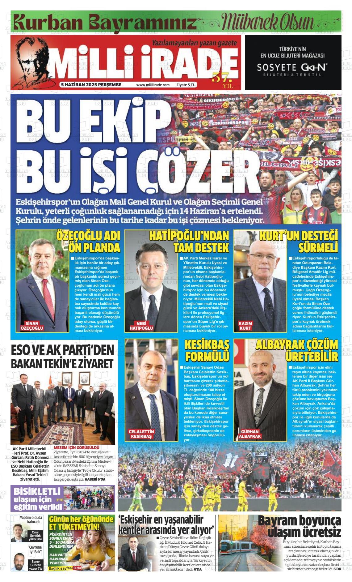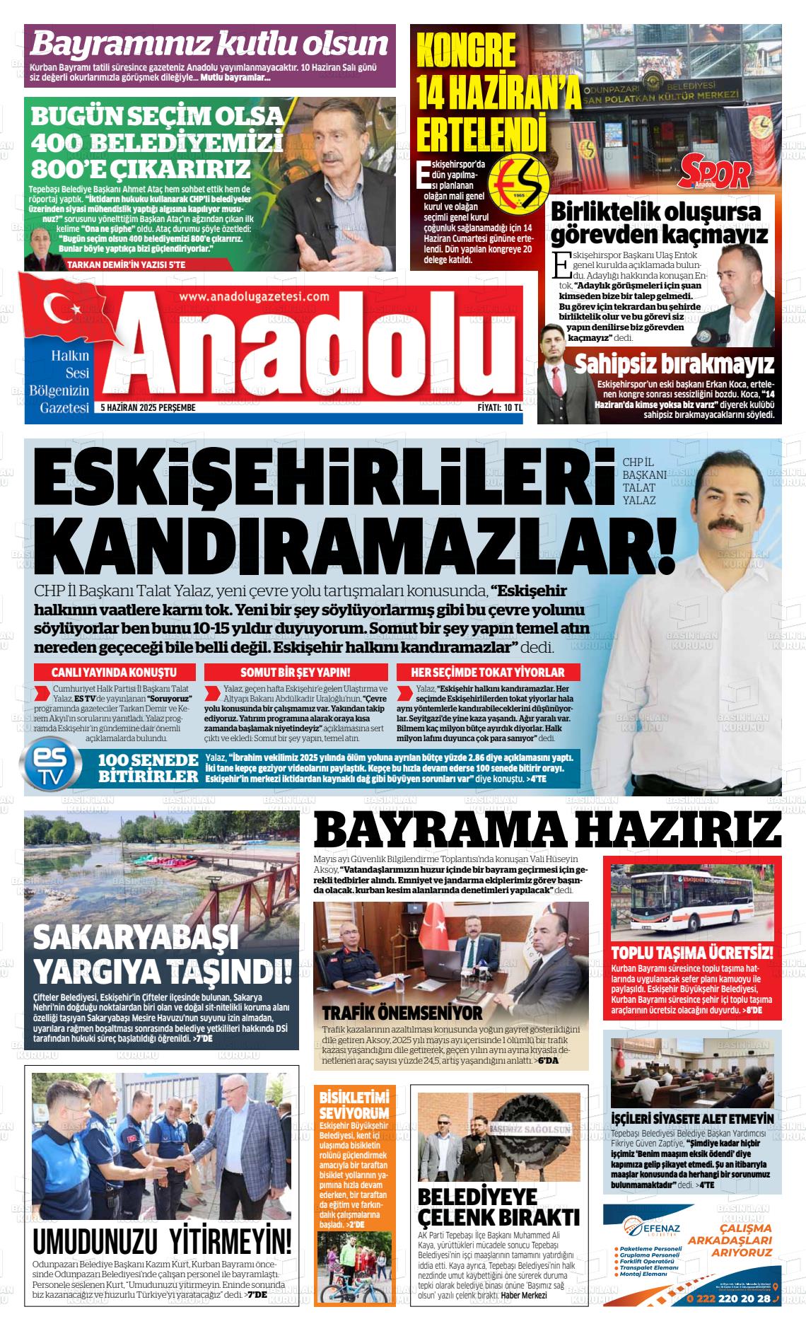 Eskİşehİr Yerel Gazeteleri 18 Ekim 2025, Cumartesi Günü Manşeti