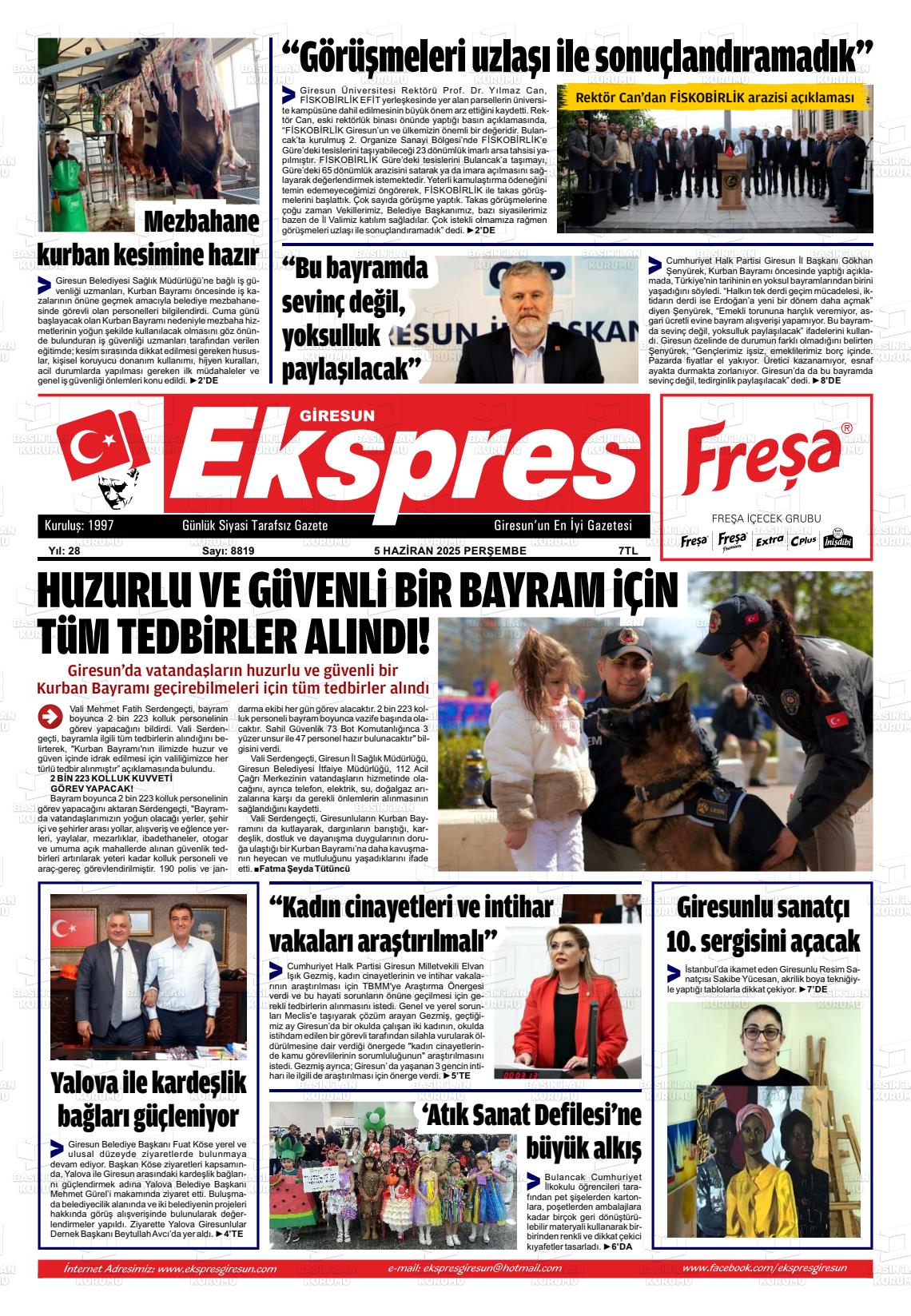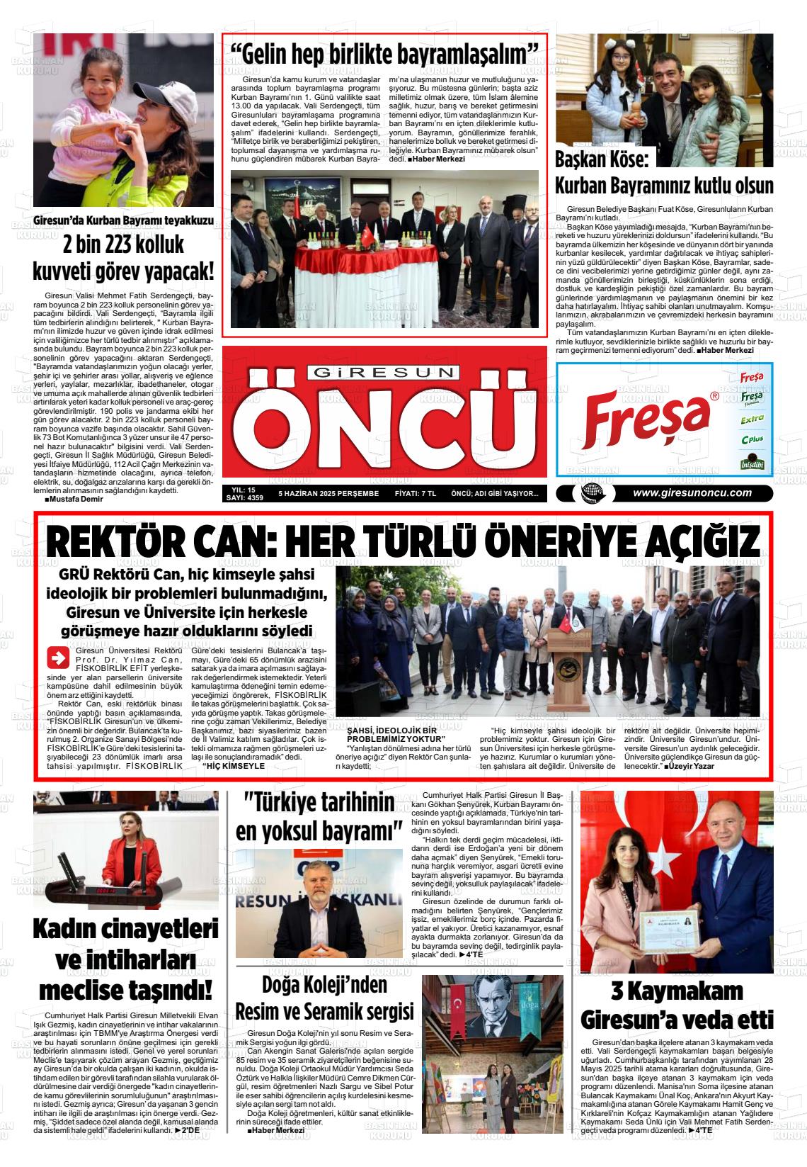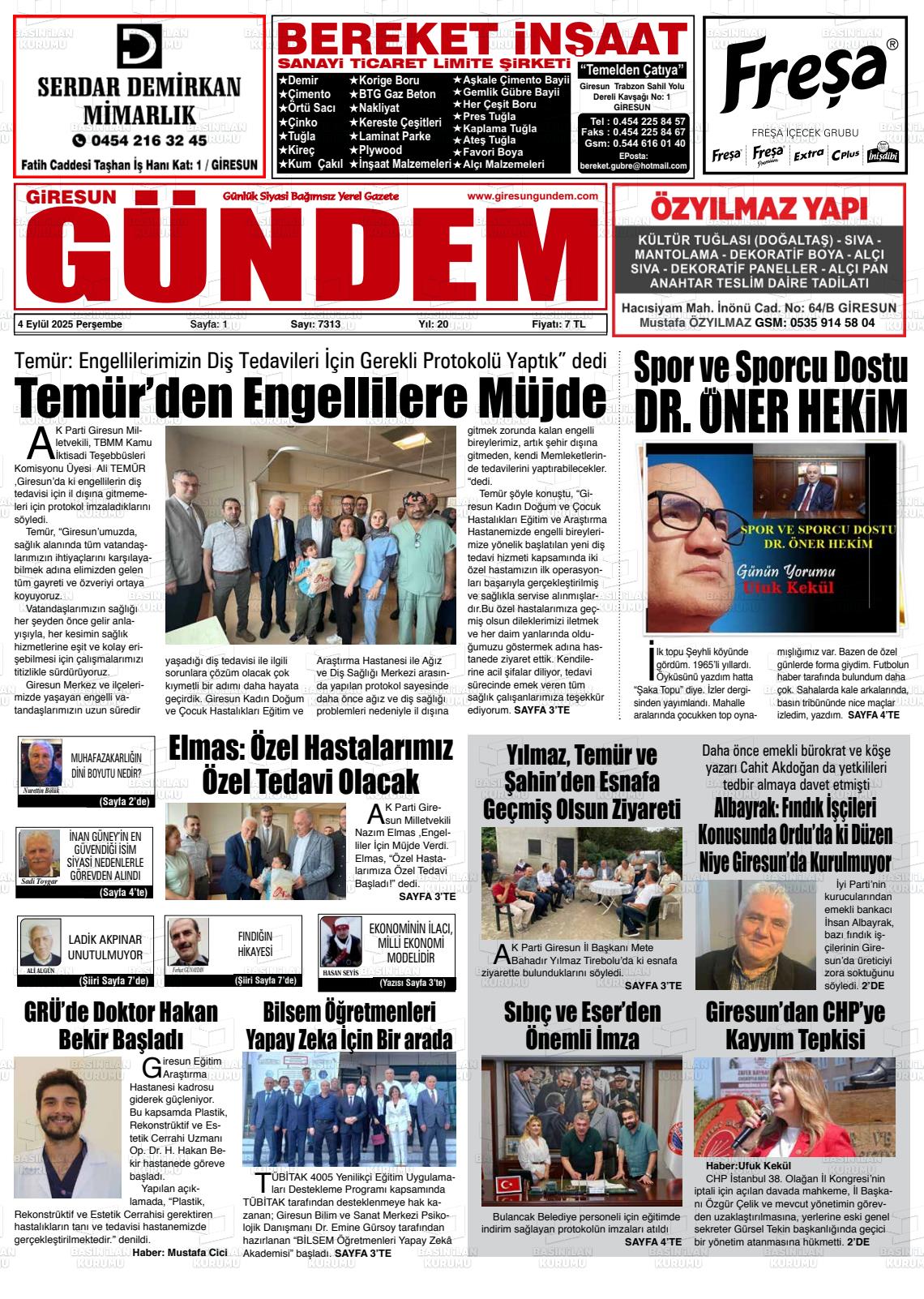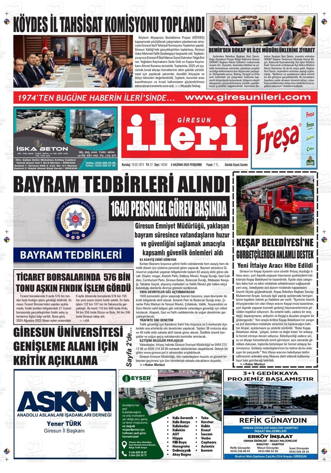 Gİresun Yerel Gazeteleri 15 Aralık 2025, Pazartesi Günü Manşeti