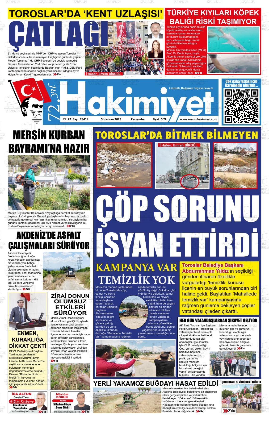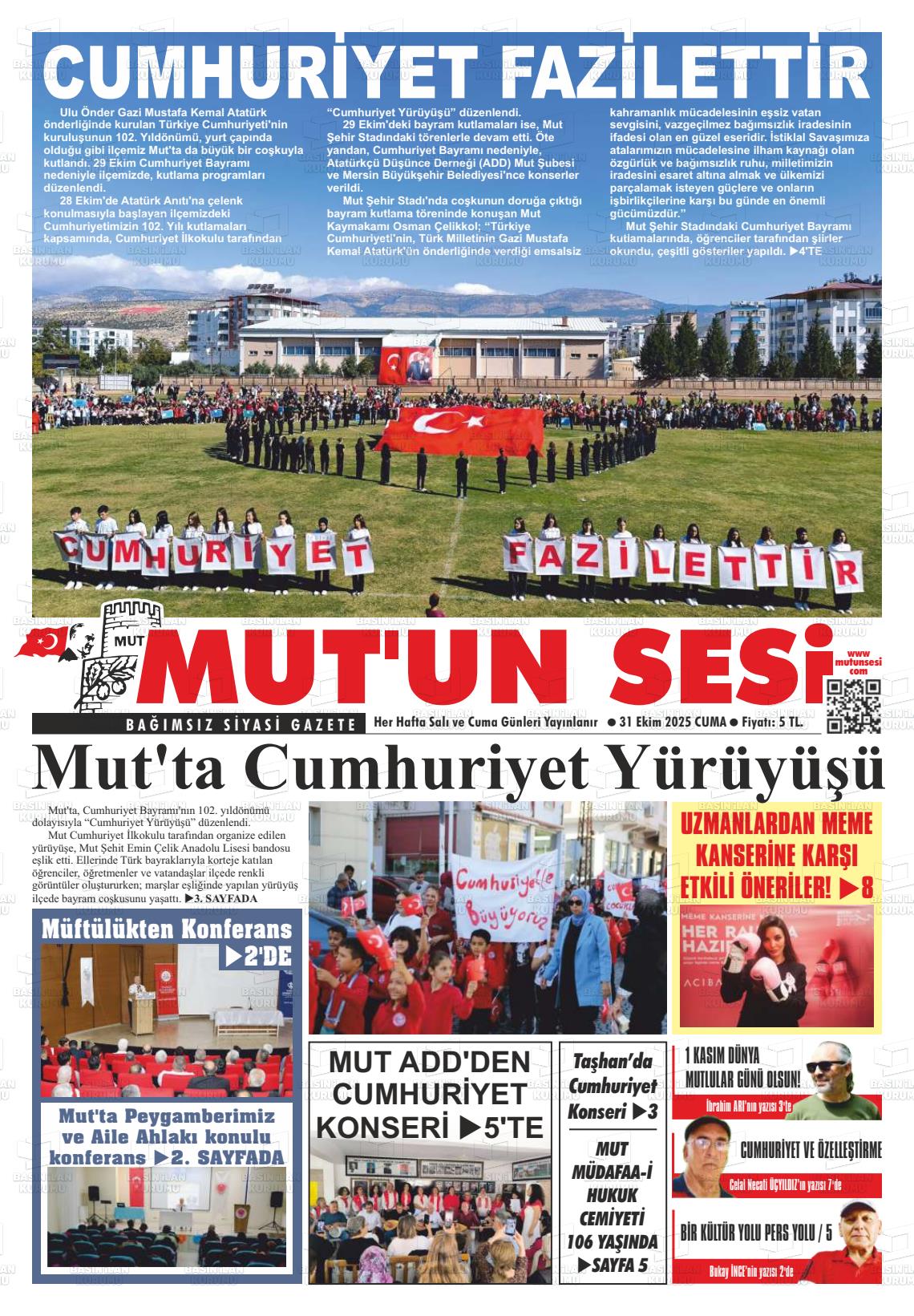 Mersİn Yerel Gazeteleri 31 Ekim 2025, Cuma Günü Manşeti