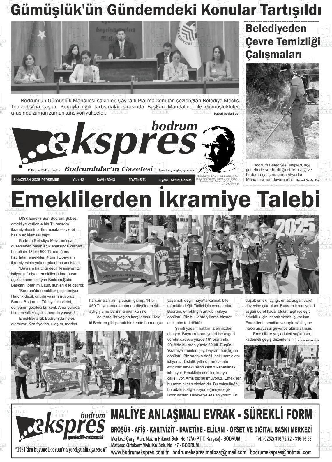 Muğla Yerel Gazeteleri 15 Aralık 2025, Pazartesi Günü Manşeti