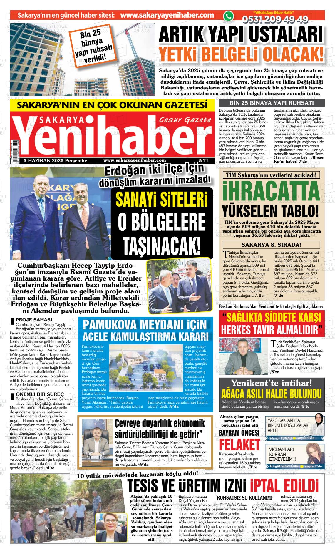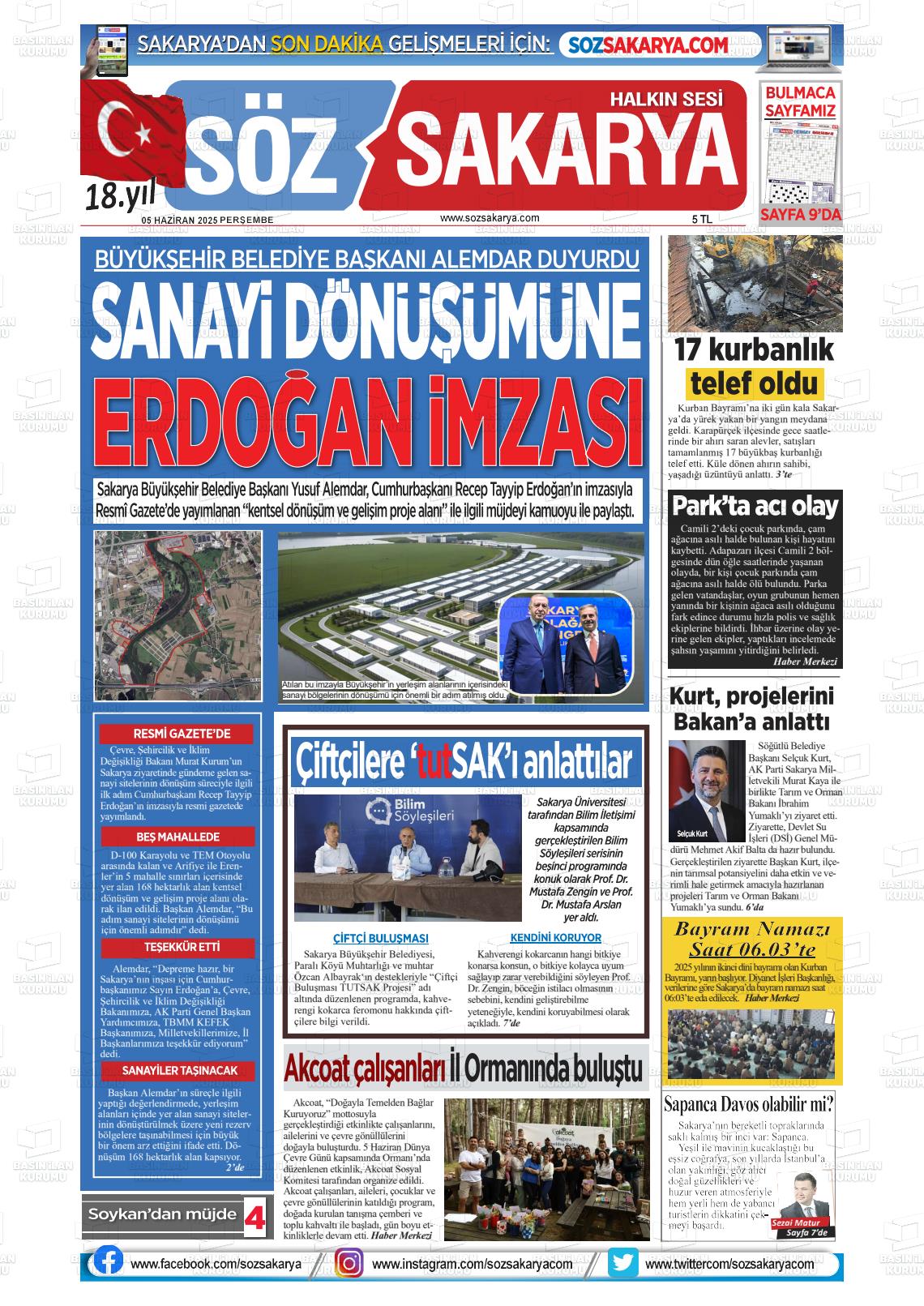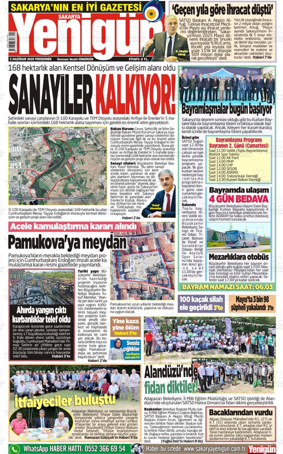 Sakarya Yerel Gazeteleri 15 Aralık 2025, Pazartesi Günü Manşeti