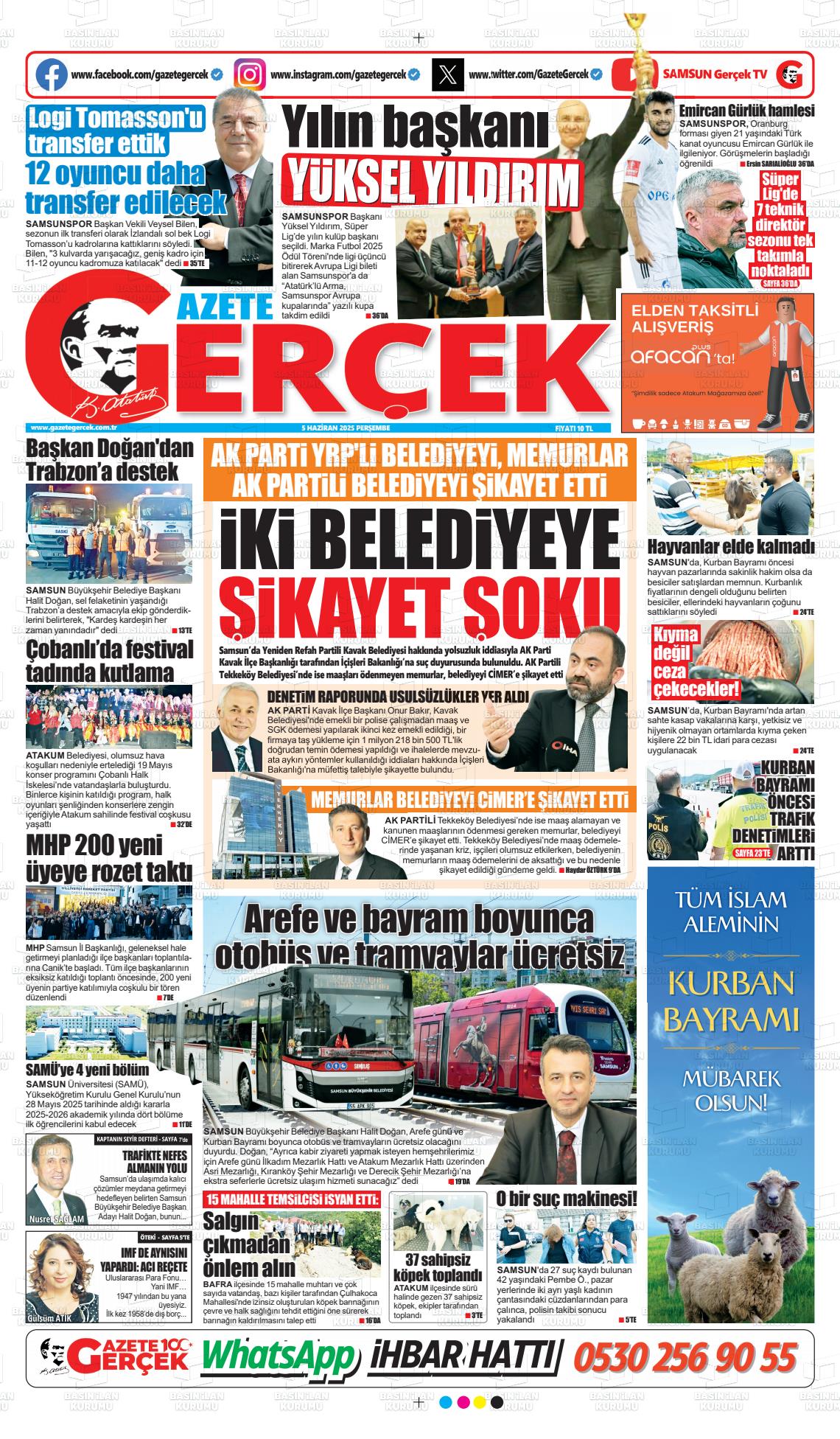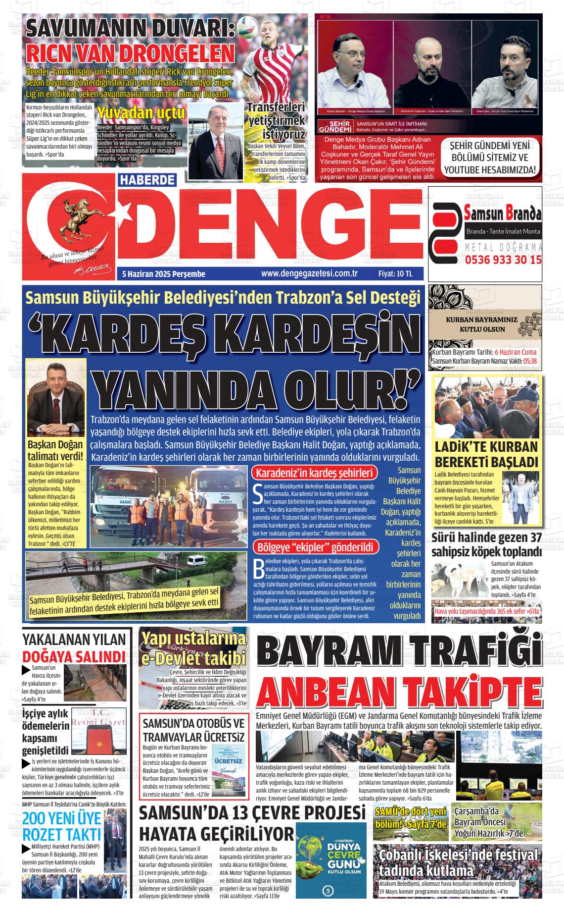 Samsun Yerel Gazeteleri 18 Ekim 2025, Cumartesi Günü Manşeti