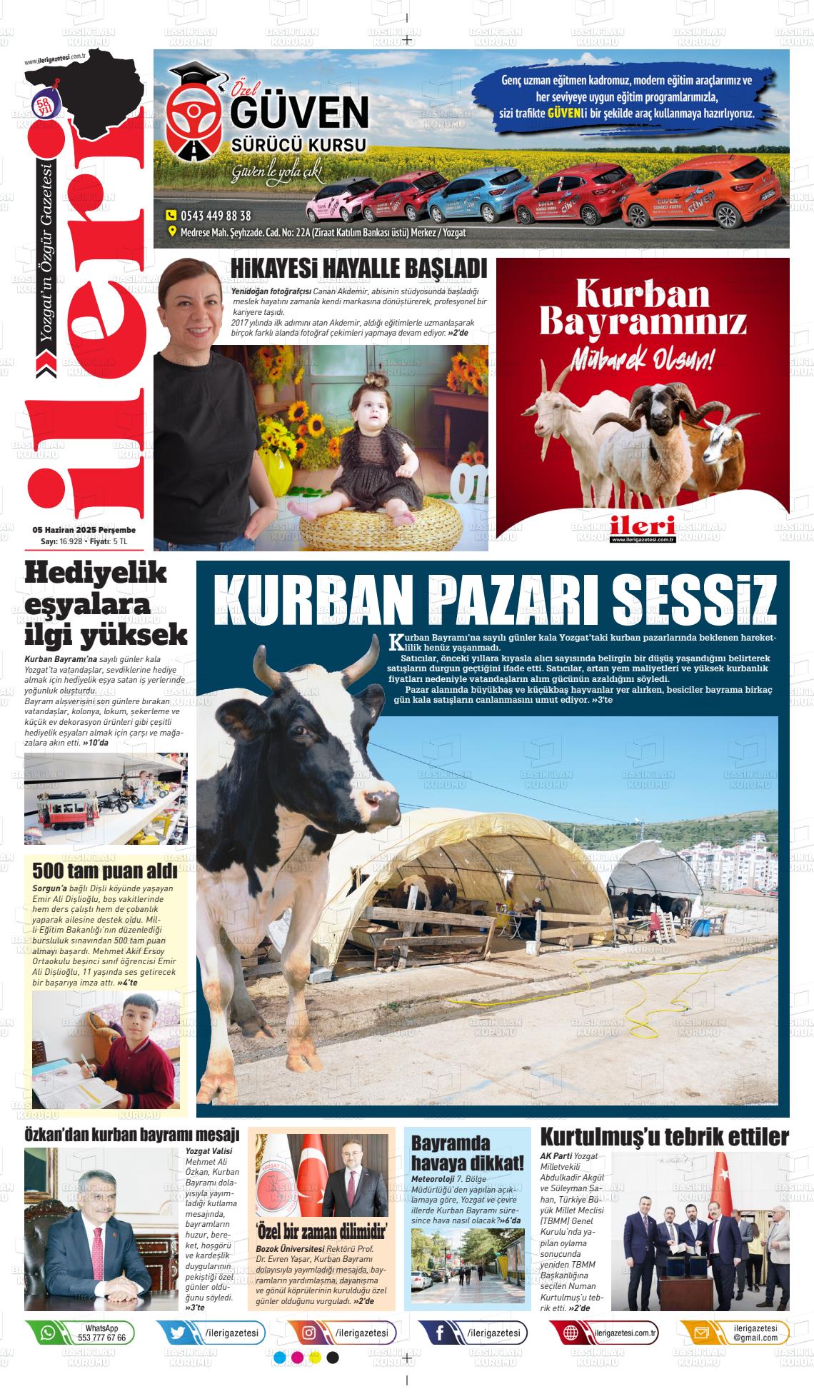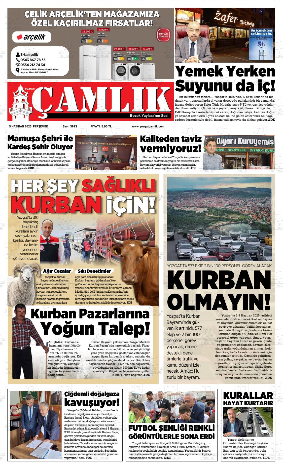 Yozgat Yerel Gazeteleri 01 Şubat 2026, Pazar Günü Manşeti