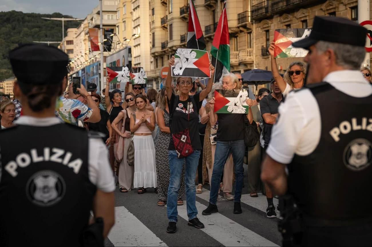İspanya’nın en önemli sinema etkinliği olan San Sebastian Uluslararası Film Festivali, Gazze’de soykırım yapan İsrail’e karşı protestolarla başladı. Bu yıl 73’üncüsü düzenlenen festivalin dünkü açılışında, yüzlerce kişi ellerinde Filistin bayraklarıyla İsrail’i protesto etti.