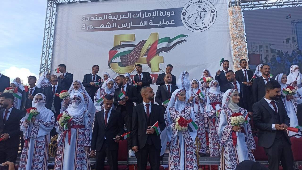 Cesur Şövalye Operasyonu 3 Başkanı Ali Al Shehhi, “Gazze’de Birleşik Arap Emirlikleri’nin 54. Birlik Günü’nü kutlamak için 54 damadın düğününü kutluyoruz” ifadelerini kullanarak, bu törenin BAE ve Filistin halkları arasındaki köklü bağı yansıttığını ve kararlılık mesajı taşıdığını belirtti. Al Shehhi, “Gazze, büyük acılar çekmiş olmasına rağmen, yıkıntılardan sevincin doğabileceğini kanıtlamaya devam eden bir şehir” dedi.