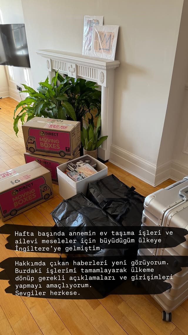 “Hafta başında annemin ev taşıma işleri ve ailevi meseleler için büyüdüğüm ülkeye İngiltere’ye gelmiştim. Hakkımda çıkan haberleri yeni görüyorum. Buradaki işlerimi tamamlayarak ülkeme dönüp gerekli açıklamaları ve girişimleri yapmayı amaçlıyorum. Sevgiler herkese.”