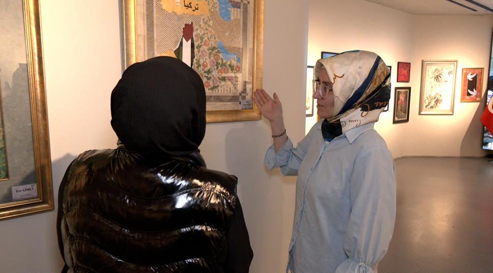 “Projede yer alan sanatçılarla ve ziyaretçilerle aynı duyarlılığı paylaşıyor olmak çok özel ve çok güzel bir duygu. Eserlerimizi hazırlarken özel bir anlamı olması bizim önceliğimiz oldu. Hat sanatı icra ederek oluşturduğum eserimin adı ise “Filistin İçin Kıyam”. Filistin bayrağının renklerini kullanarak ve Filistin’i düşünerek eserimi hazırladım. Kızım ise Hanzala’nın kız kardeşi olduğunu düşünerek özel bir figür işledi. Eserlerimizin ilgi görmesine çok mutlu olduk.”