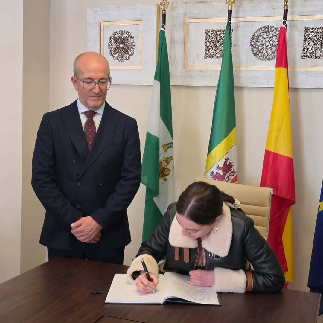 “Çok Sevgili Belediye Başkanı David ile birlikte Torvizcón’un Onur Kitabında hislerimi paylaştım. Sevgili David misafirperverliğiniz ve sıcak Akdeniz insanı ruhunuz bizimle çok özdeş, coşkunuz ve candanlığınız için ve bir aile gibi hissettirdiğiniz için çok teşekkür ederim.