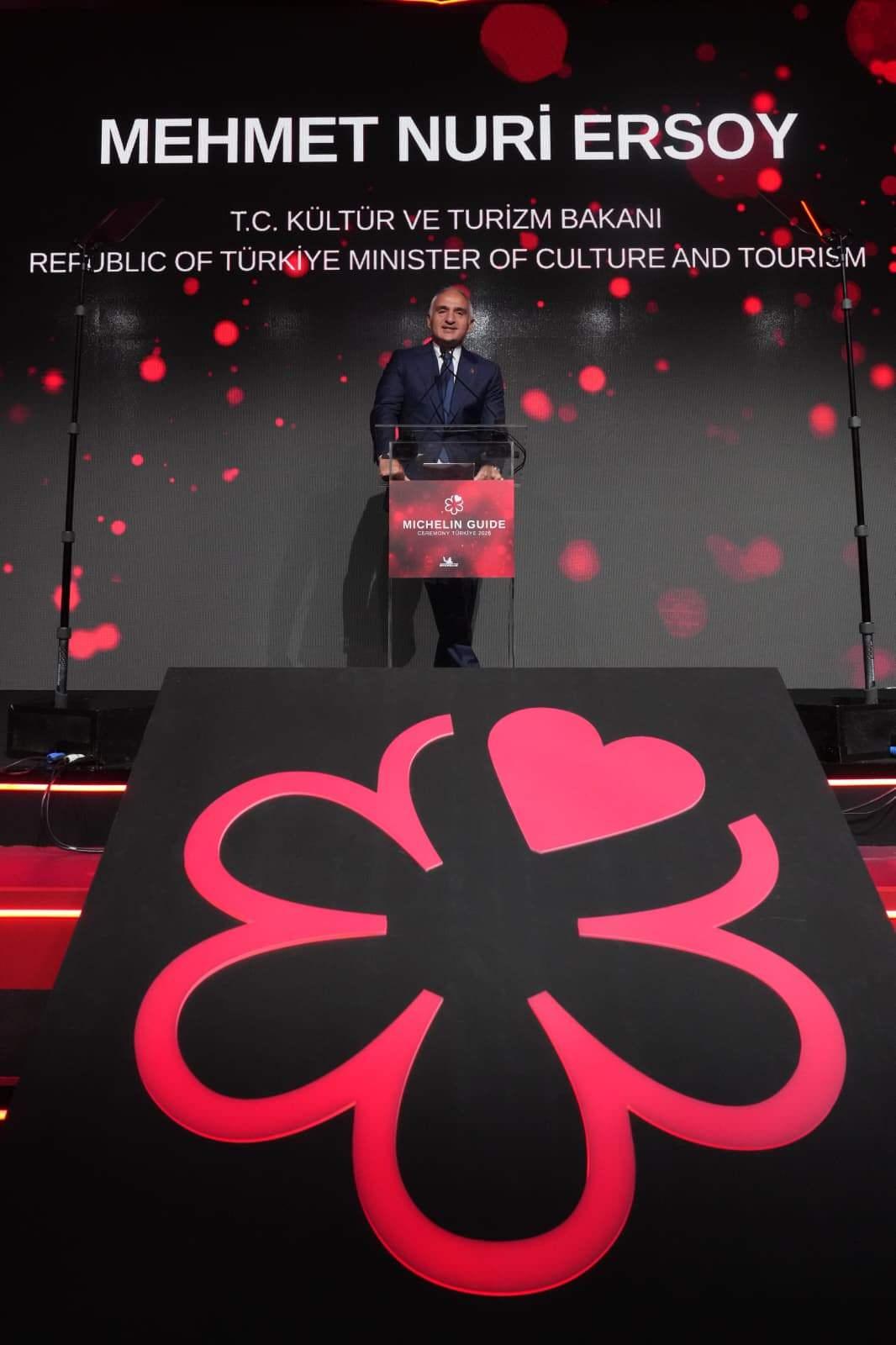 Michelin Rehberi organizasyonuna ve süreçte emeği geçen herkese teşekkür eden Bakan Ersoy, “Michelin Rehberi seçkisinde yer almaya hak kazanan tüm restoranlarımızı ve şeflerini emeklerinden ötürü tebrik ediyorum. Bu başarının hem restoranlarımızın hem destinasyonlarımızın hem de ülkemizin turizmindeki yükselen konumunu daha da güçlendireceğine inanıyor ve Michelin Rehberi’nin artık tüm yurdumuza yayılıyor olmasındaki ivmeden duyduğum memnuniyeti sizlerle paylaşmak istiyorum.” diyerek sözlerini tamamladı.
