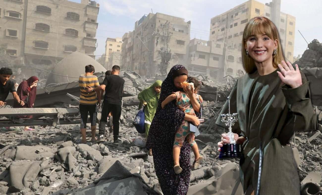 Basın toplantısında Filistin’de yaşananlarla ilgili yöneltilen sorulara açık ve net yanıtlar veren Jennifer Lawrence, şu ifadeleri kullandı:
