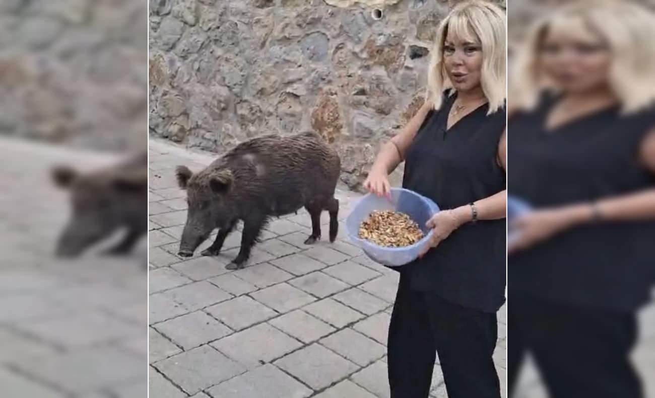 Ramazan Bayramı’nı Bodrum’daki yazlığında geçiren ünlü şarkıcı Safiye Soyman, kapısına gelen yaban domuzunu elleriyle beslediği anları sosyal medya hesabından paylaştı.