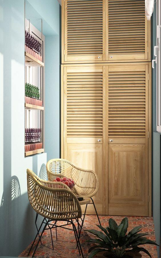 Eğer balkonunuz genişse çok kapılı dolaplara yer vererek depolama hacmini arttırabilirsiniz.