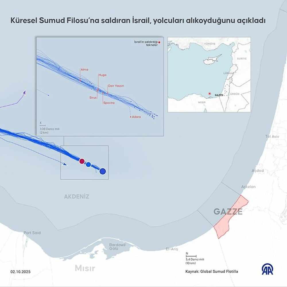 Küresel Sumud Filosu Türkiye Delegasyonu, İsrail’in Gazze’ye insani yardım taşıyan Küresel Sumud Filosu’na yönelik saldırısında Tel Aviv yönetiminin yasa dışı alıkoyduğu ve durumları teyit edilebilen Türk aktivist sayısının 48 olduğunu açıklanmıştı. Medya dünyasında tanınan sunucu İkbal Gürpınar’ın da bulunduğu gemiyle ilgili haber geldi.