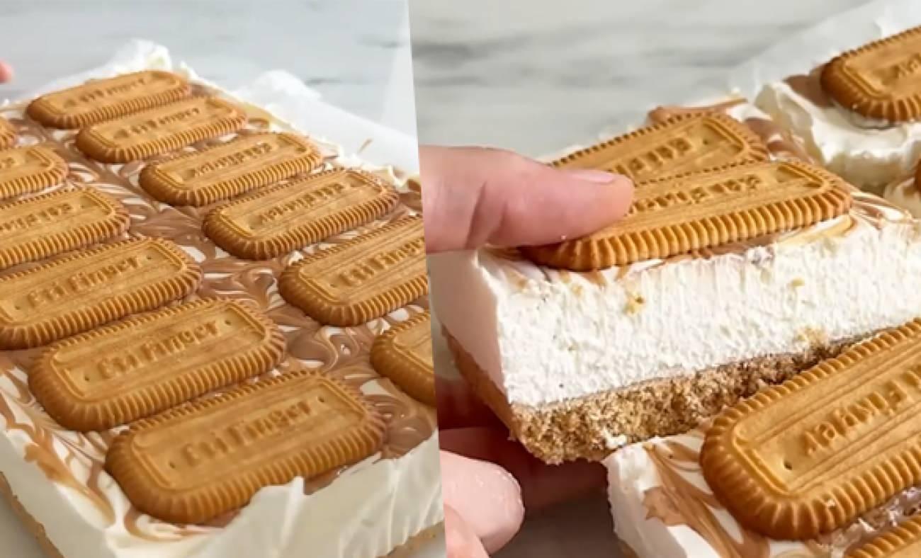 Bisküvileri robottan geçirip un haline getirin. Eritilmiş tereyağını ekleyip karışımı bir kez daha çevirin. Hazırladığınız kalıbın tabanına pişirme kâğıdı serin, karışımı eşit şekilde yayın ve bastırarak sıkıştırın. Donması için buzdolabına kaldırın.