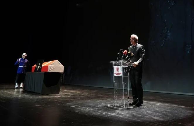 “Bugün burada, Türk sanat müziğinin efsanevi sesi, gönüllerimizde taht kurmuş büyük bir sanatçıyı Muazzez Abacı’yı sonsuzluğa uğurlamak için bir aradayız. Sayın Abacı 1998 yılında Devlet Sanatçısı unvanını da kazanmıştı. Ancak şarkılarıyla her kuşaktan insanın gönlünde taht kurarak en kıymetli unvanı aldı ve Halkın Sanatçısı gönüllerde yer edindi. O’nun şarkılarında kendi hikâyesini buldu. Bu yüzden Muazzez Abacı, sadece bir sanatçı değil; bir kültürel miras, bir duygu köprüsü, bir müzik abidesi olarak kalacaktır.”