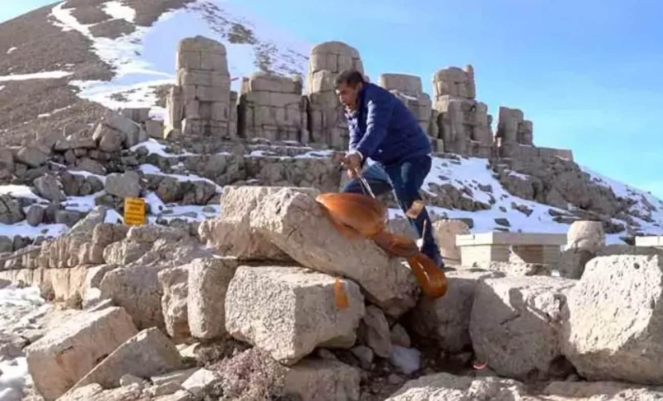 Nemrut Dağı’na çıkan Aydın Aydın, yapay zekanın insana ait bütün bilgileri toplayıp insana karşı kullandığını, birçok mesleğin yok olacağını, müzik sektörüne de ciddi zarar vereceğini belirterek, sazını taşa vurup kırdı.