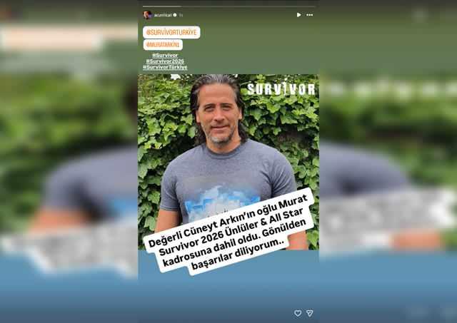 Yarışmanın yapımcısı Acun Ilıcalı, sosyal medya hesabından yaptığı paylaşımla Yeşilçam’ın efsane oyuncusu Cüneyt Arkın’ın oğlu Murat Arkın’ın Survivor 2026 All Star & Ünlüler kadrosunda yer alacağını duyurdu. Ilıcalı, paylaşımında Arkın’a başarılar diledi.