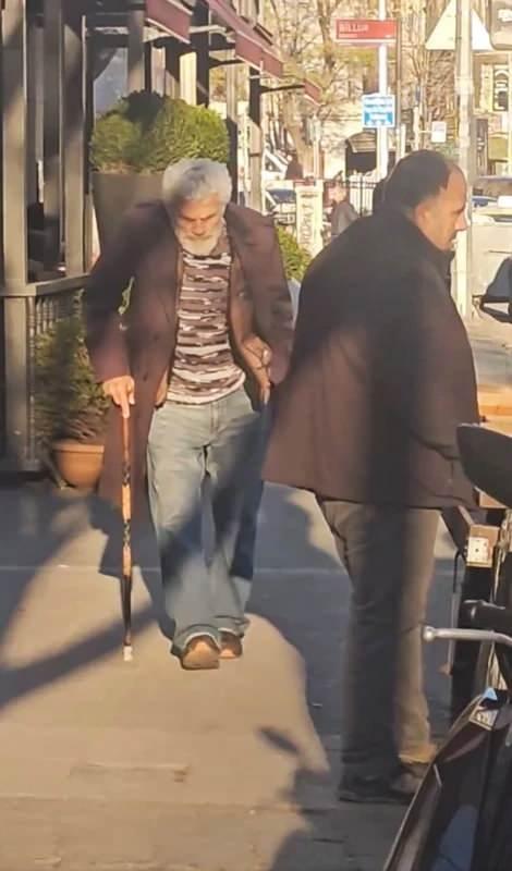 İstanbul Karaköy – Tünel hattında bastonuna yaslanarak güçlükle yürürken görüntülenen 83 yaşındaki usta sanatçı, her adımda durup tekrardan yürümeye çalıştığı görüldü.